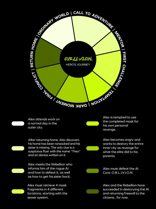 The story follows Alex, a young rebel from the Outer City, where an AI system called O.B.L.V.I.O.N. is used by the Inner City to manipulate and suppress the population. As Alex joins a rebellion to fight back, players must confront the central question: Can AI be reimagined as a force for good, or is it destined to be a tool of control?